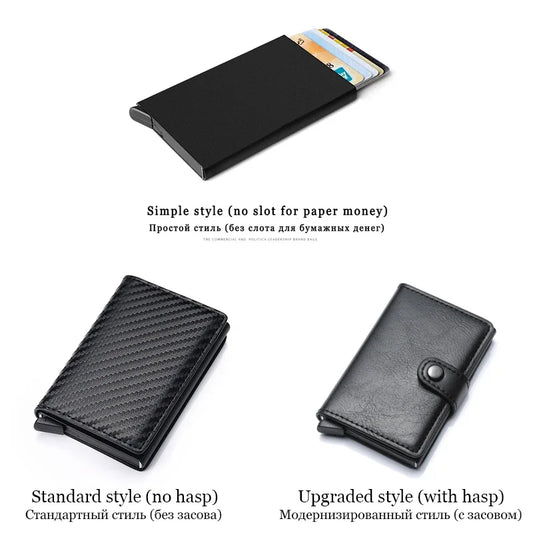 Peňaženka s držiakom na kreditné karty z uhlíkových vlákien Muži Rfid Smart Metal Tenká Tenká Vyskakovacia Minimalistická peňaženka Malá čierna Peňaženka Kovová peňaženka