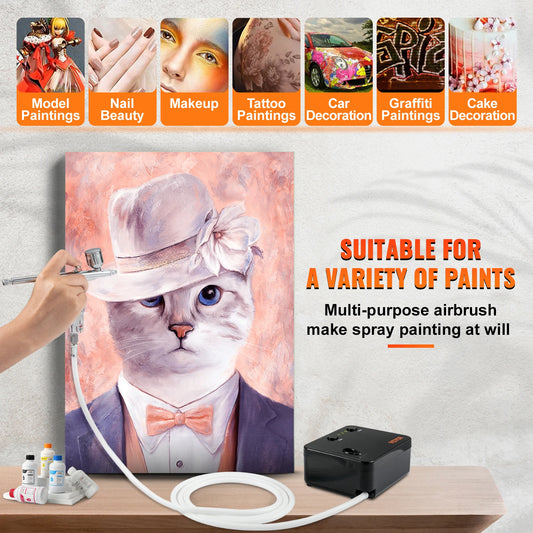 Dvojčinná súprava airbrush VEVOR s 30PSI vysokotlakovým kompresorom na automatické spustenie/zastavenie pre model make-upu nechtov na maľovanie tort