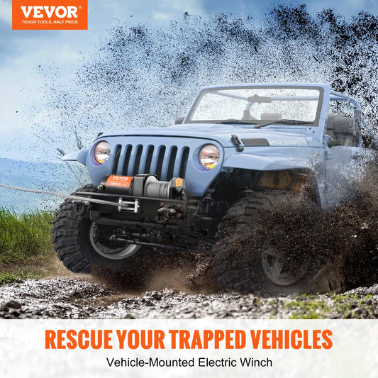 Elektrický navijak VEVOR 2000 lbs Oceľový lanový navijak ATV navijak s káblovým diaľkovým ovládaním a 4-cestným vodidlom na ťahanie terénneho SUV Jeep
