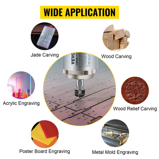 Vzduchom chladený vretenový motor VEVOR 0,8 kW Vysokorýchlostná rotácia 12 000-24 000 PRM 400 Hz na gravírovanie, frézovanie a brúsenie Použitie CNC routera