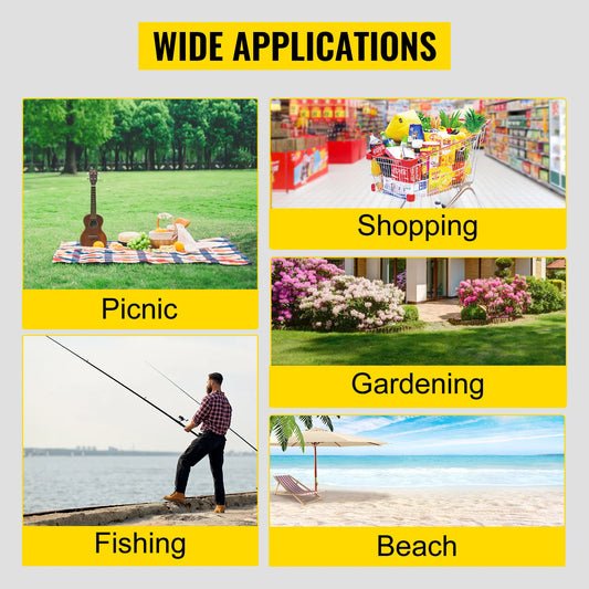 VEVOR Skladací vozík Vozík Prenosný Outdoor Camping Pláž Veľkokapacitná multifunkčná nastaviteľná rukoväť pre piknikový grilovací vozík