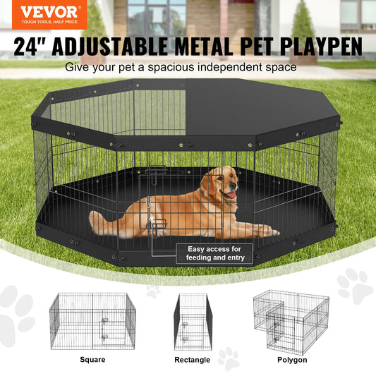 Ohrádka pre psa VEVOR 8 panelová skladacia kov s vrchným krytom a spodnou podložkou 24" H Ohradka pre malé a stredné domáce zvieratá na kemping