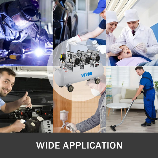 Vzduchový kompresor VEVOR 100 l s dvojitým tlakomerom, bezpečným solenoidovým ventilom 3HP 22 galónový ultratichý tichý bezolejový vzduchový kompresor