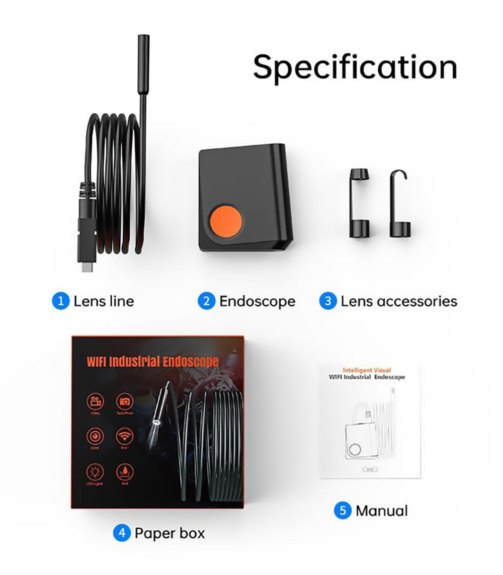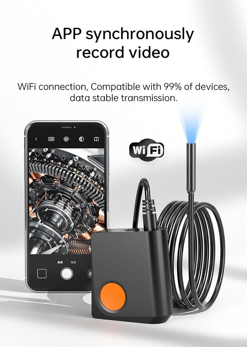 3. Bezdrátové endoskopy sú kompatibilné s väčšinou značiek smartfónov, tabletov a iPadov. Pripojenie cez Wi-Fi a ovládanie prostredníctvom aplikácie poskytuje HD obraz a video v reálnom čase.