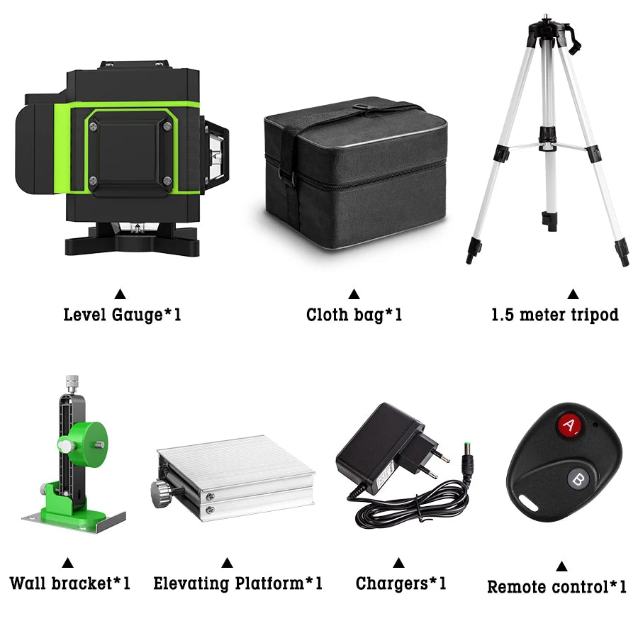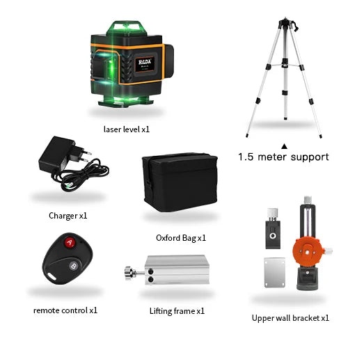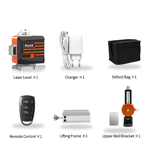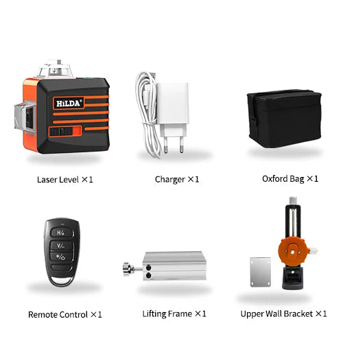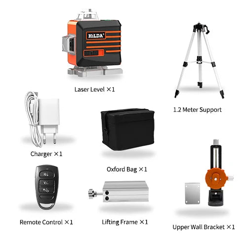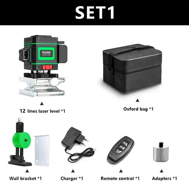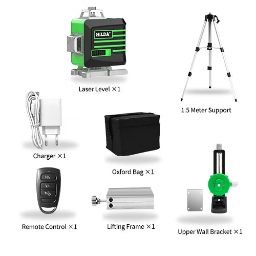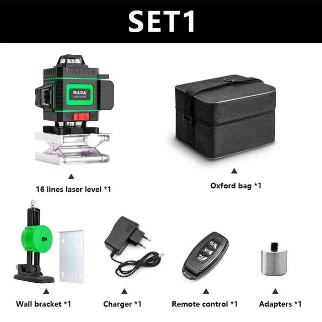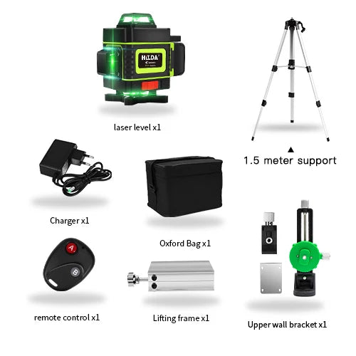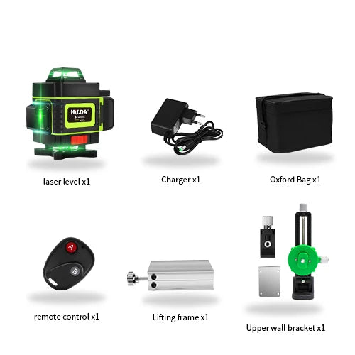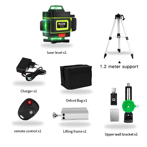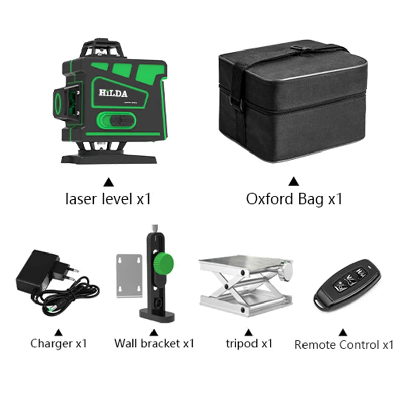 HILDA 12/16 čiarový 3/4D laserová vodováha Samonivelačná 360 horizontálna a vertikálna krížová super výkonná zelená laserová vodováha