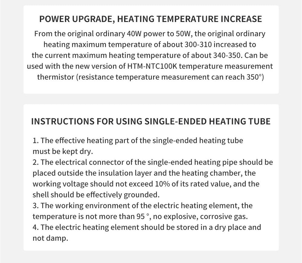 4. Má výkon 50 W a maximálnu vykurovacia teplota je asi 340–350 stupňov Celzia. Je tiež možné ho použiť s novou verziou termistoru HTM-NTC100K na meranie teploty (meranie odporovej teploty dosahuje 350 stupňov Celzia).
