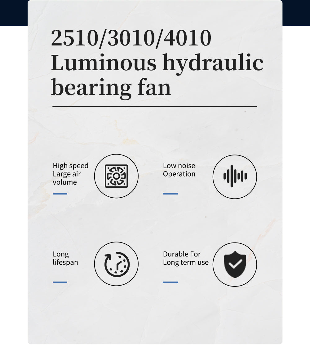 2. Životnosť hydraulického ložiska je oveľa dlhšia ako životnosť bežného ložiska s olejovým tesnením a ventilátor bude počas prevádzky tichý.