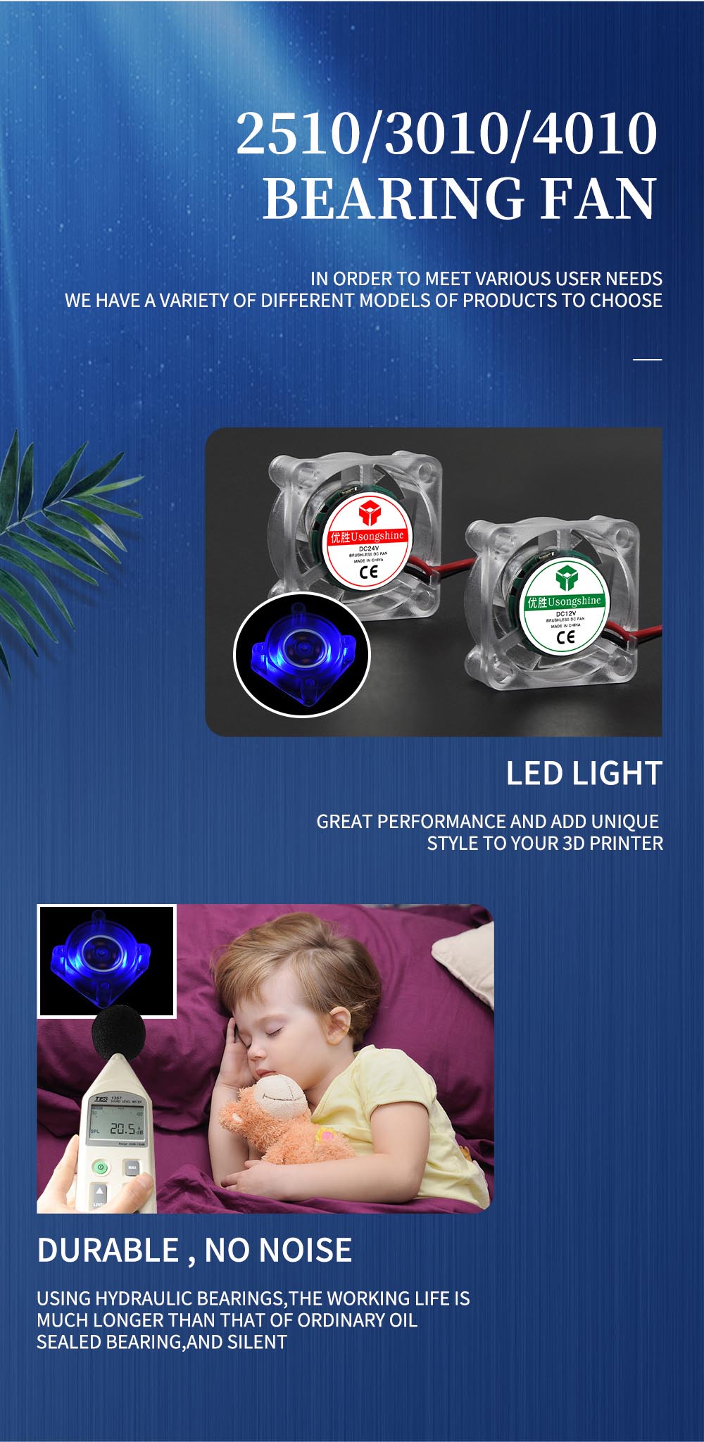 1. Chladiaci ventilátor s LED osvetlením má skvělý výkon a dodá vašim 3D tlačiarňam jedinečný styl.