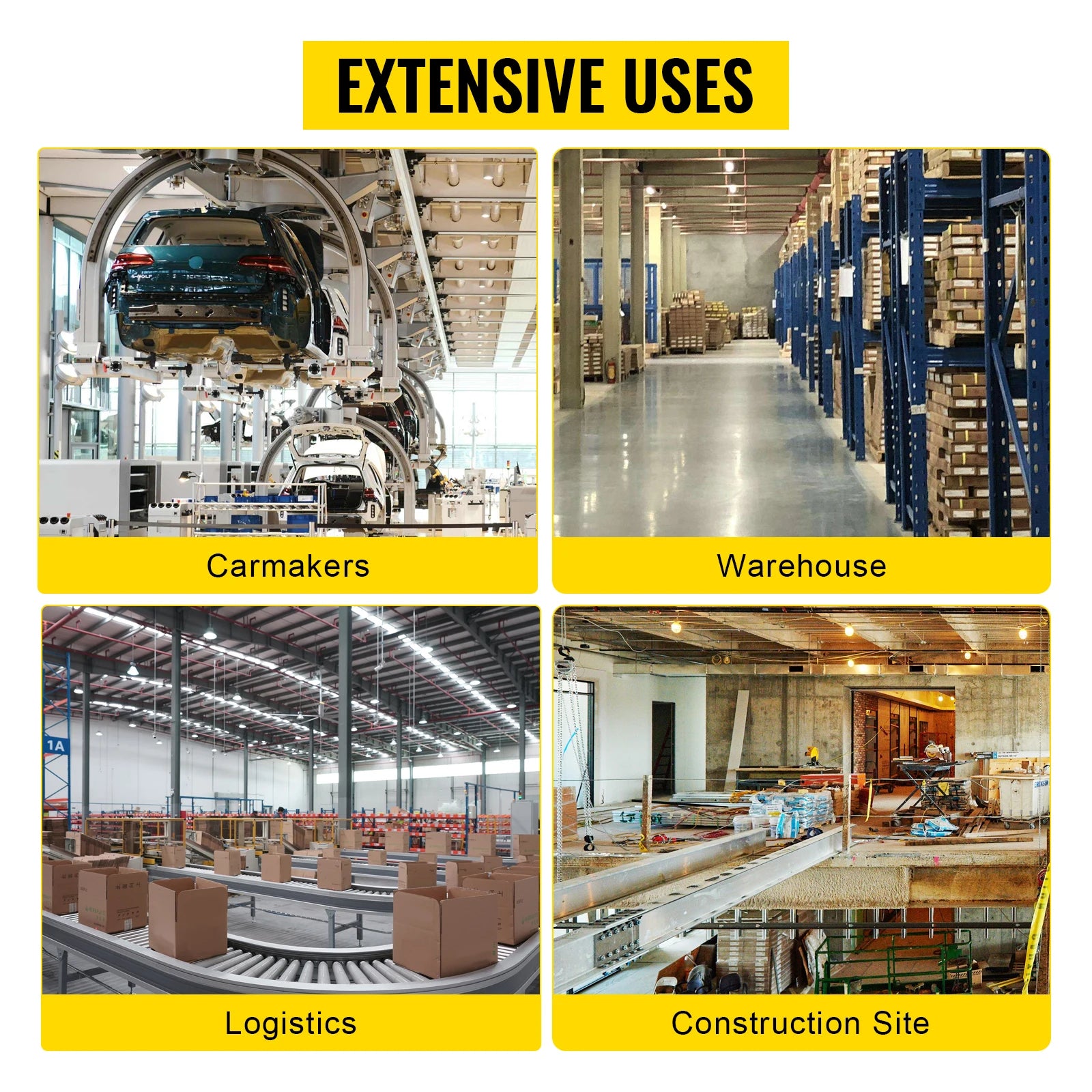 【Široká aplikácia】: Kladkostroj je vhodný pre továrne, sklady, staveniská, automobilky, železničné stavby atď. Je to ideálny nástroj pre prácu v náročných vnútorných alebo vonkajších prostrediach. Použite ho medzi šírkou a výškou lišty, aby bola kompatibilná s vnútornými veľkosťami montážnych konzol.