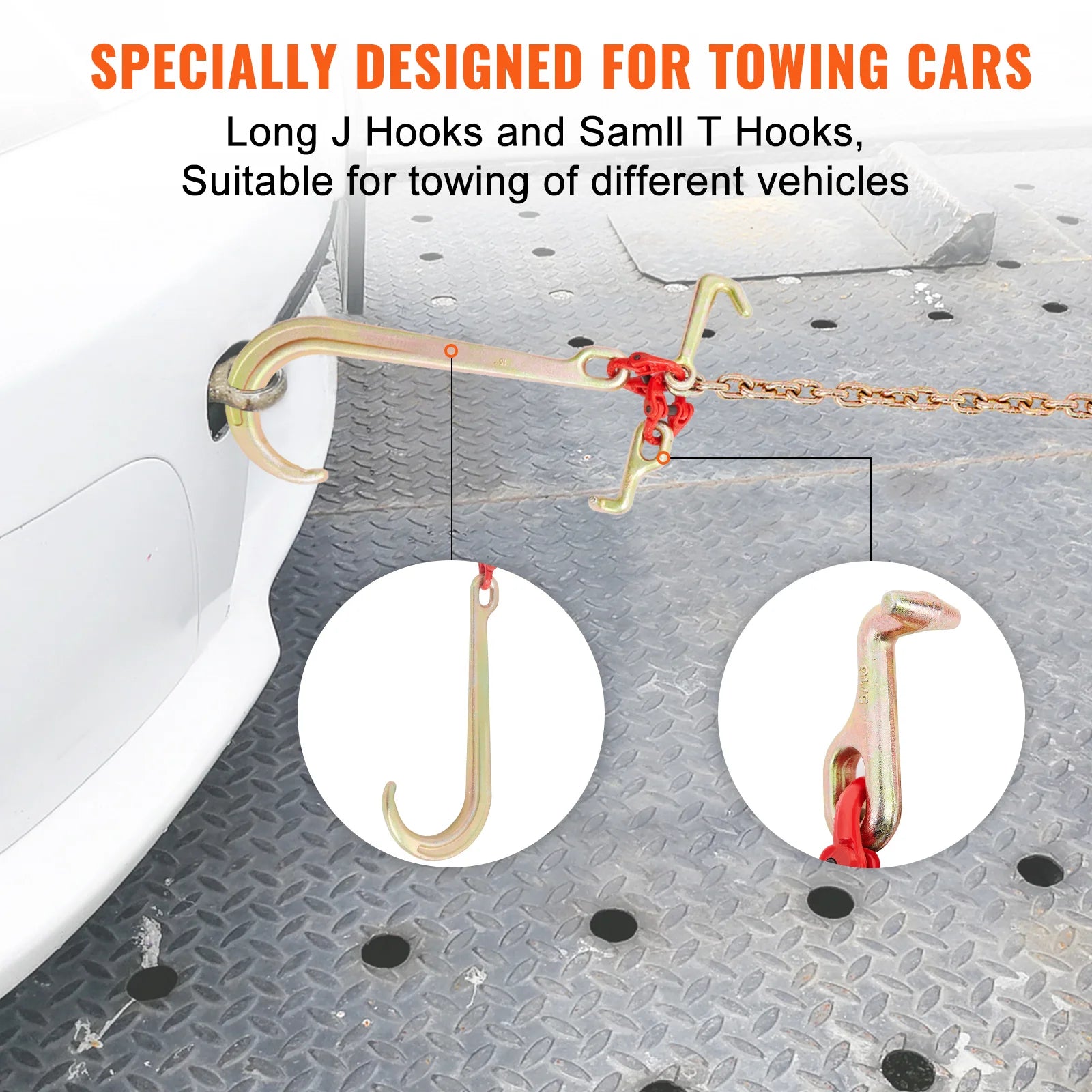VEVOR, váš exkluzívny odborník na náradie. Táto reťaz na viazanie je vyrobená z vysoko kvalitnej ocele a prešla certifikáciou Grade 80 DOT. Je tiež vybavená nastaviteľnými háčikmi, aby sa zmestili na rôzne typy vozidiel.