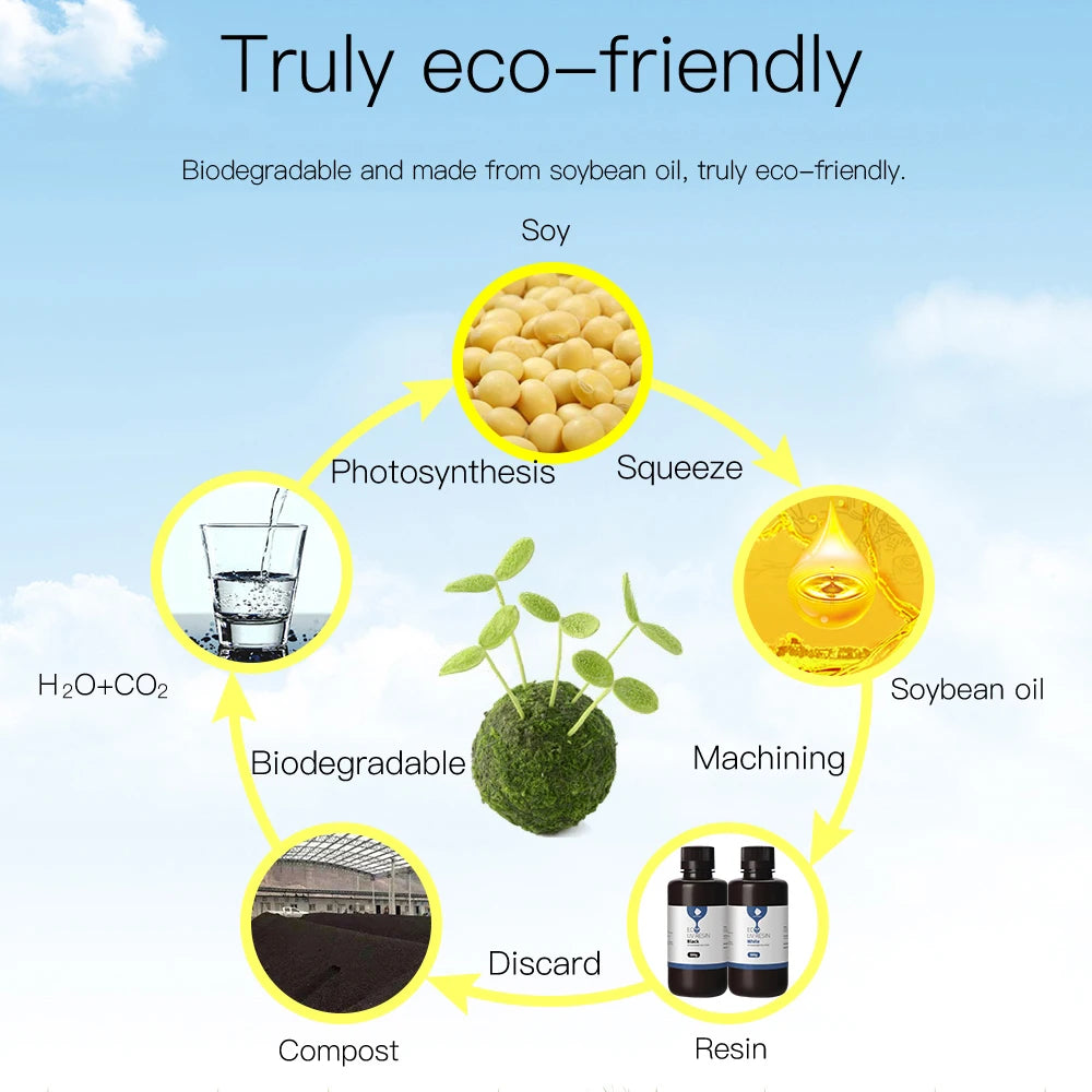4ks/šarže ANYCUBIC ECO UV živica pre LCD 3D tlačiareň Tekutý 3D tlačový materiál s nízkym zápachom 1kg/fľaša Rastlinná UV živica