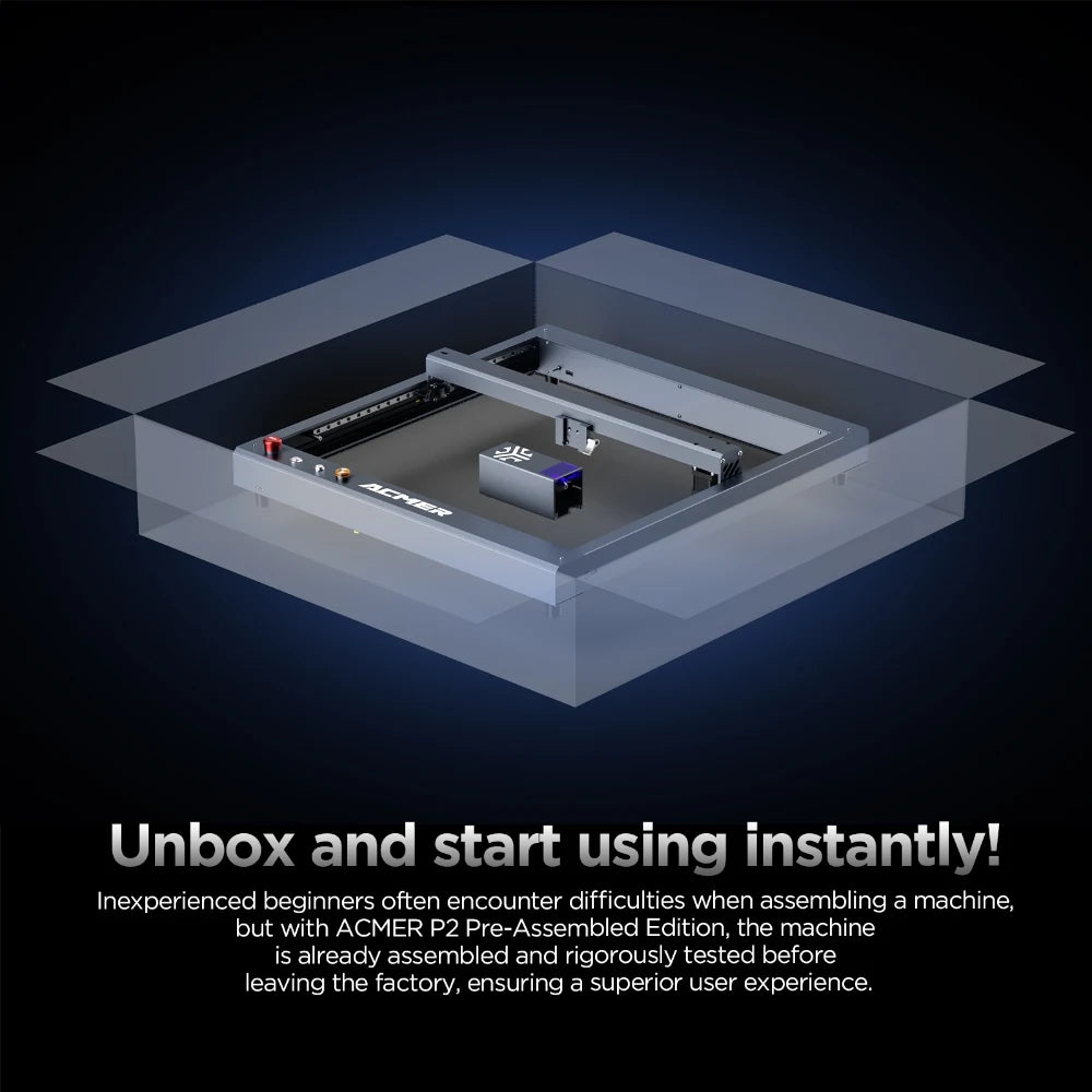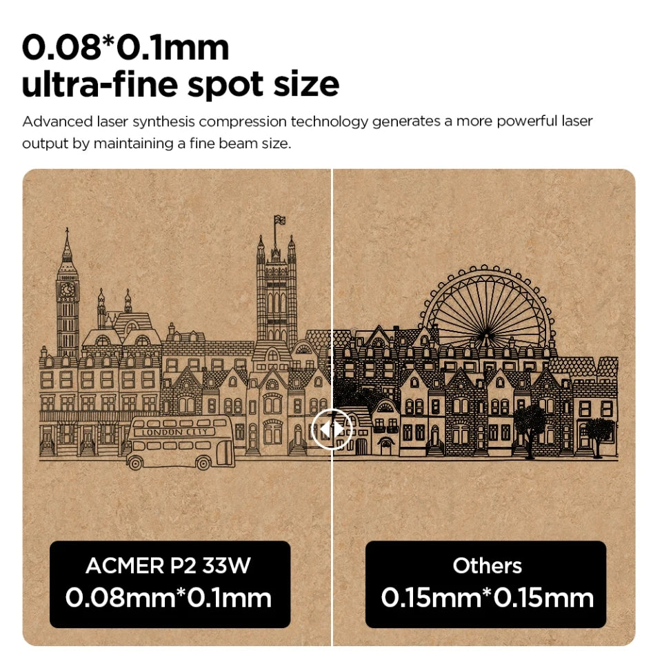 ACMER P2 33W lasery Gravírovanie Air Assist WIFI APP Control CNC Obrábači kovov drevári Gravírovací laserový rezací stroj do dreva