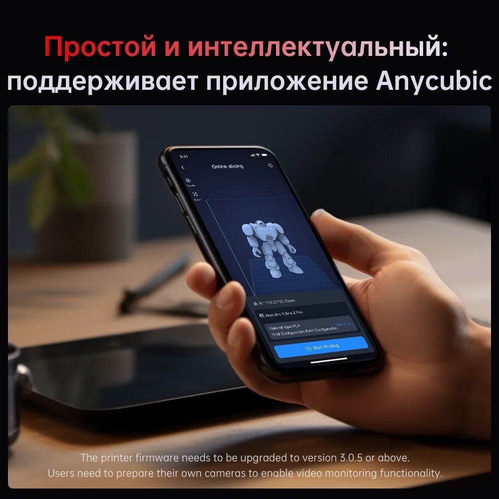 Po aktualizácii firmvéru tlačiarne na verziu 3.0.5 alebo novšiu ponúka aplikácia Anycubic APP podporu pre rôzne funkcie, vrátane online vyhľadávania v knižnici modelov, sledovania videa v reálnom čase a monitorovania stavu, online krájania a tlače, časozberného nahrávania, ako aj diaľkové ovládanie a správa.