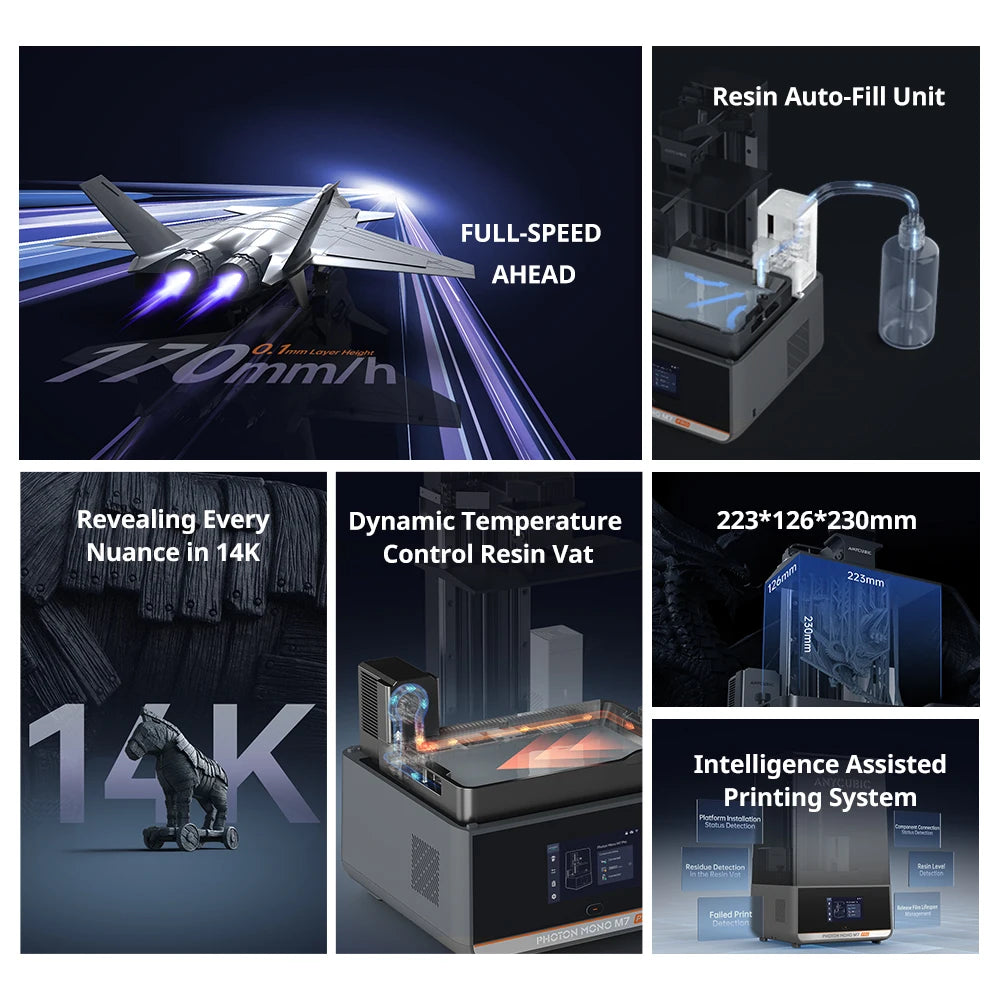 ANYCUBIC Photon Mono M7 Pro UV živicová 3D tlačiareň 10'' 14K LCD 3D tlačiareň s automatickým dopĺňaním živice, vysokorýchlostná veľkosť tlače 223