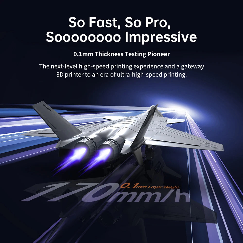Odbúrajte obmedzenia živice a zažite vysokorýchlostnú tlač v testovacích podmienkach s hrúbkou 0,1 mm. High-Speed Resin 2.0: Doba tlače s výškou vrstvy 0,1 mm, 170 mm/h.