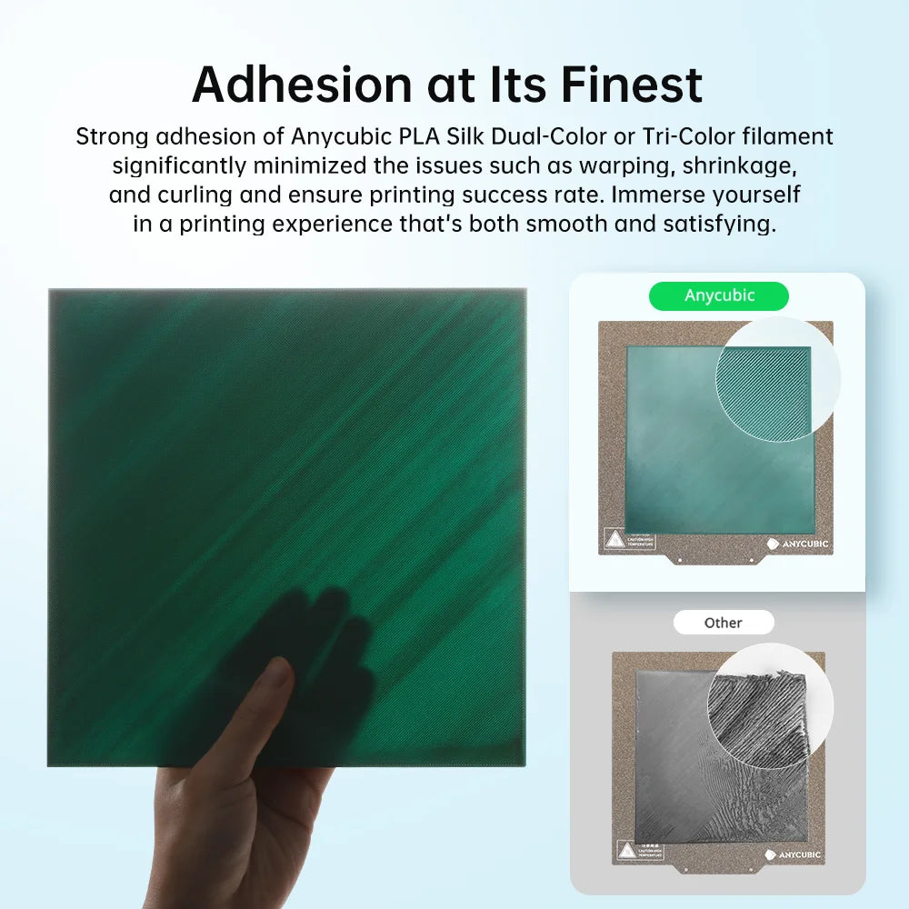 Silná priľnavosť vlákna Anycubic PLA Silk Dual-Color výrazne minimalizovala problémy, ako je deformácia, zmršťovanie a zvlnenie, a zabezpečila úspešnosť tlače. Ponorte sa do zážitku z tlače, ktorý je hladký a zároveň uspokojivý.