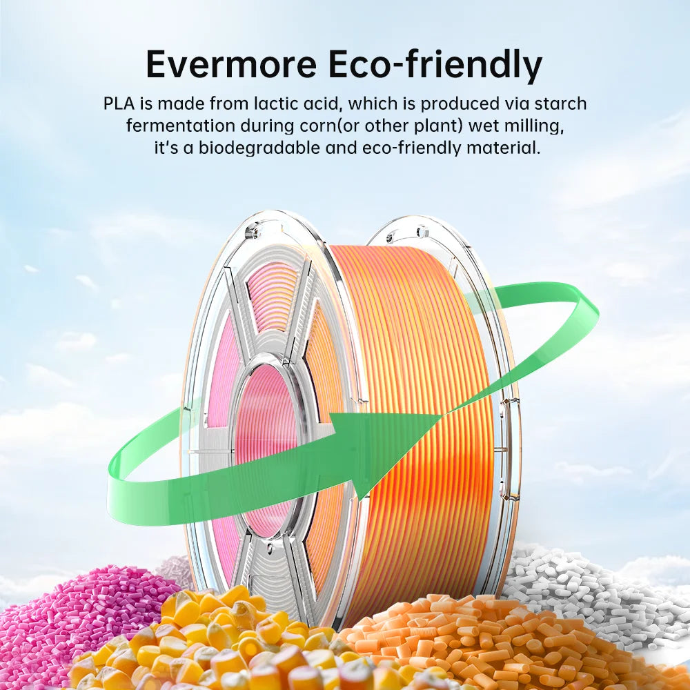 Vlákno Anycubic PLA Slick Dual-Color, ktoré využíva špičkový výrobný proces s trojitým dvojitým vytláčaním, kombinuje dve alebo tri farby v celej cievke. Modely s potlačou majú hodvábnu textúru a gradientný efekt, vyžarujú žiarivé farby a podmanivý lesk.