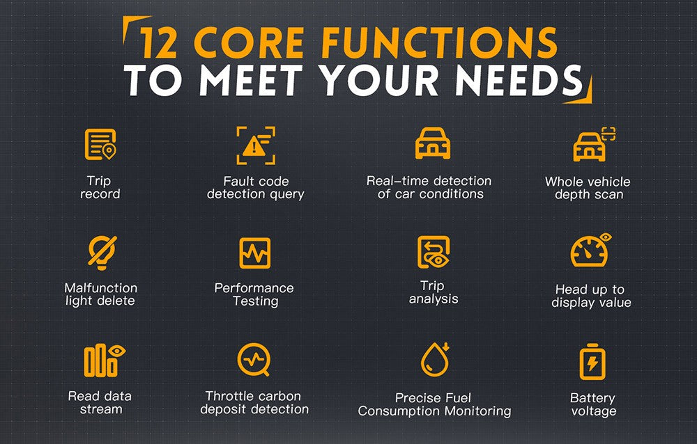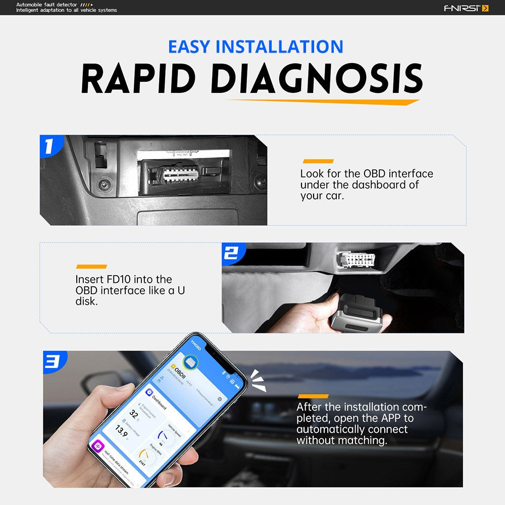 Detektor závad FNIRSI FD10 OBD2 dokáže detekovať alebo vymazat kódy závad a vysvetliť ich význam, vrátane testovania výkonu, mazania kontroliek poruch, zobrazovania hodnôt na čelnom skle, analýzy spotreby paliva, analýzy jazdy, vyhledávania a dotazování na kódy DTC, hĺbkového skenovania celého vozidla, detekcie stavu vozidla v reálnom čase atď.