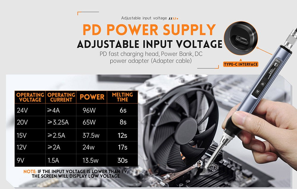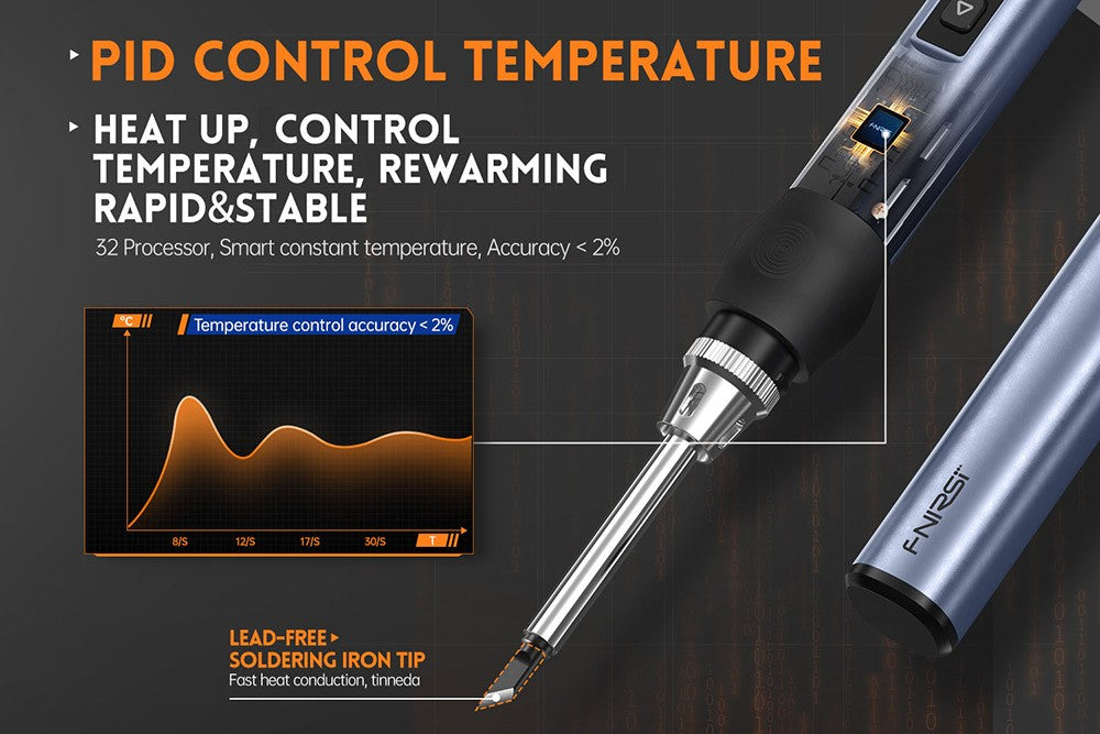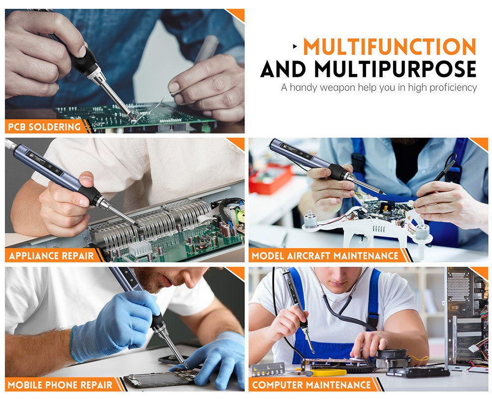 Tento prenosný pájecí nástroj sa zahreje za sekundy. Teplota sa zobrazuje na OLED displeji, ktorý je možné presne a jednoducho nastaviť od 180 do 780 stupňov Fahrenheita (80 do 420 stupňov Celzia). Je vhodný na opravy pájením dronov, šperkov, hodín, mobilných telefónov a iných presných a cenných objektov.