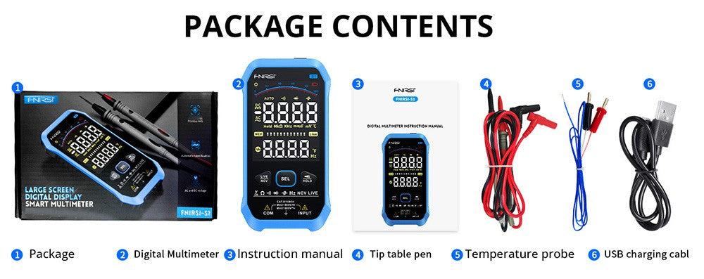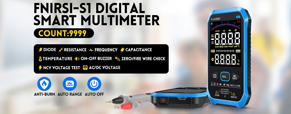 Multimeter FNIRSI S1 dokáže automaticky identifikovať striedavé/stejnosmerné napätie, odpor a priepustnosť, a preto je vhodný pre začiatočníkov aj profesionálov. (Funkcia „SMART“ potrebuje určitý čas na identifikáciu zdroja signálu, preto dôjde k malému oneskoreniu).