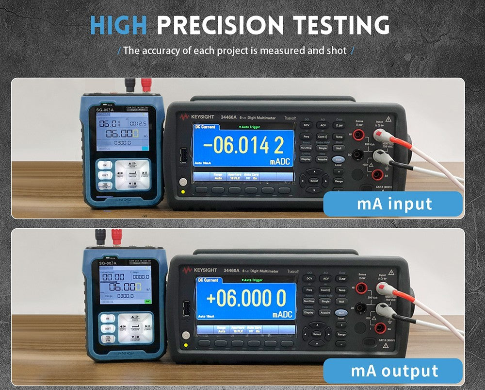 Generátor signálov FNIRSI SG-003A dokáže previesť vstupný signál na výstupný signál, ktorý možno previesť medzi rôznymi fyzikálnymi veličinami; napríklad vstupný frekvenčný signál sa prevádza na prúdový signál a vstupný rozsah 0-1000 Hz sa prevádza na 4-20 mA.