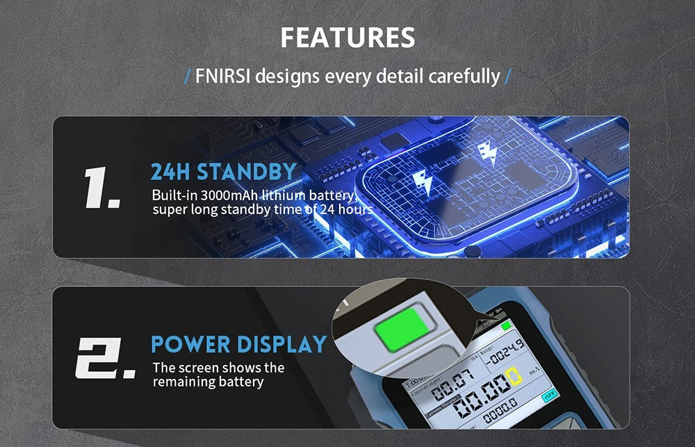 Díky vysoko kapacitnej lítiovej batérii s kapacitou 3000 mAh sa dá plne nabiť do 4–6 hodín. Čas pohotovostného režimu dosahuje až 24 hodín, čo vám poskytuje dlhú dobu prevádzky.