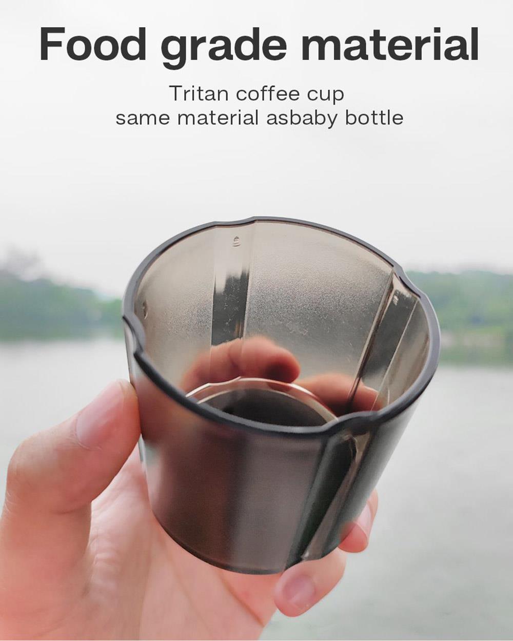 Kávový pohár Tritan má objem 60 ml a je vyrobený z materiálu vhodného pre styk s potravinami, ktorý je takmer totožný s materiálom, z ktorého sú vyrobené kojenecké fľaše.