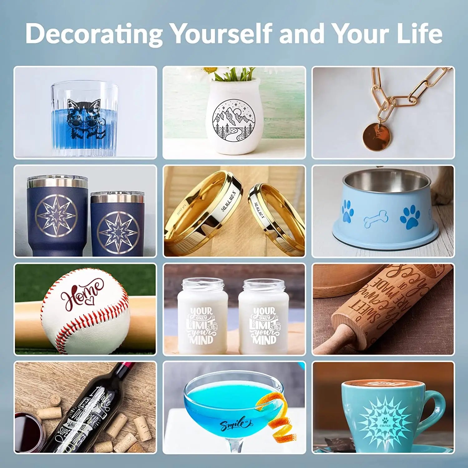 ✅【Vyrezávanie valcových predmetov】 Valčekové skľučovadlo s osou Y sa používa na gravírovanie valcových predmetov, ako je gravírovanie textu a vzorov na plechovky, spĺňa potreby gravírovania rôznych uhlov.